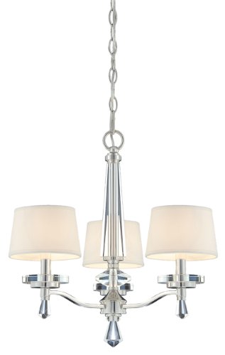 Light Bulb:(3)60w B10 Cand F Incand Elora 3-Light Mini Chandelier Transitional collection featuring the combination of polished chrome, metal works with crystal clear accents and bobeches all complimenting the solid crystal column. Chrome finish Off-white silk shade
