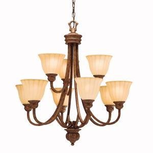 This 9 light chandelier comes from the Northam collection and features a Lincoln Bronze finish and cloudy umber glass. Bulb specifications are as follows: 9 light incandescent 100W max medium base.