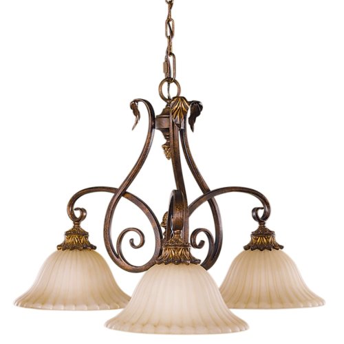 The Detailed Description of Murray Feiss F2073/3ATS Sonoma Valley Three-Light Billiard Chandelier, Aged Tortoise Shell with French Scavo Glass ShadesFeatures