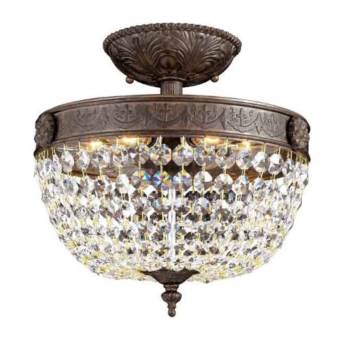 Finish:Artisan Bronze, Diffuser:Crystal, Light Bulb:(6)60w B10 Cand C Incand Knobb Hill six-light crystal semi flush ceiling fixture.