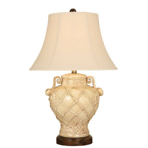 Finish:Cream, Shade:Beige Linen, Light Bulb:(1)150w A21 3-Way Med F Incand Tuscan style jug table lamp. Shade included. Three-way socket.