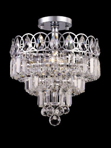 GH80502 Features: -Semi flush mount.-Crystal shade.-Base material: Metal.-On/Off socket. Color/Finish: -Polished chrome finish. Specifications: -Accommodates (3) 40W E12 candelabra base bulb. Dimensions: -Overall dimensions: 13'' H x 12'' W x 12'' D.