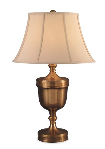 The antique brass finish complements the classic trophy urn shape of this table lamp. It features a beige sewn shade. A 3-way socket allows you to easily specify the light output.
