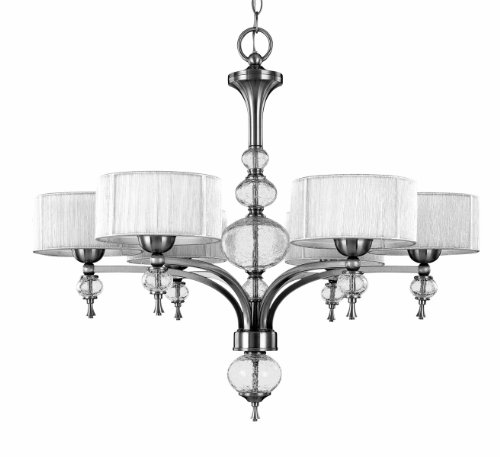 Finish:Brushed Nickel, Shade:Silver String Shade, Light Bulb:(6)60w B10 Cand C Incand This product is from the Uptown Contemporary Collection. Crackled glass balls accent the clean contemporary feeling of this eye-catching fixture. It features a Brushed Nickel finish paired with Uptown Silver string shades. Comes with 10' chain and 12' wire.