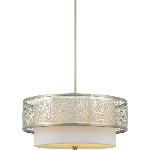 Finish:Brushed Nickel, Light Bulb:(3)100w A19 Med F Incand This clever, layered design is an ideal choice for an artistic, contemporary look. The metal shade is laser-cut into an abstract rose pattern, and it sits over a white silk fabric shade for a sleek and sophisticated look.