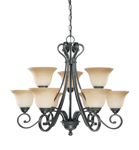 The Detailed Description of Nuvo 60/2744 2 Tier 9 Light Chandelier with Champagne Linen GlassFeatures