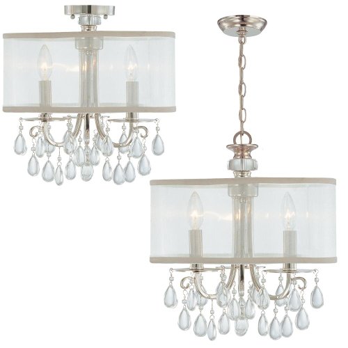 The Detailed Description of Crystorama 5623-CH Hampton Collection 3-Light Convertible Fixture, Polished Chrome Finish with Silk Shimmer Fabric Shade and Oyster CrystalsFeatures
