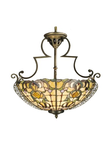 The Detailed Description of Dale Tiffany TH60006 Tiffany Inverted Pendant Light , Antique Brass and Art Glass ShadeFeatures