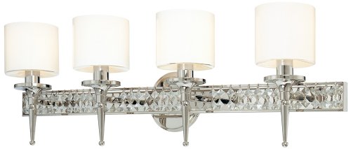 Troy Lighting B1924PN Collins Collection 4-Light Vanity Fixture features a shiny Polished Nickel finish and Clear Opal glass shades with Diamond Crystal accents in an elegant transitional design that will enhance any urban dwelling deep in the heart of a city or a rural farm in the heart of the country for a little classic charm that will be appreciated for many years to come. The B1924PN is 32.5-Inch wide x 10.5-Inch high x 6.5-Inch extension. The B1924PN comes one per package, and requires four 60-watt candelabra base incandescent bulbs (not included), dimmable using a standard incandescent dimmer. Being a Leader in an Industry requires many attributes. Troy Lightings passion for quality, design, value and service lead the way. Troy Lightings lighting team produce awesome lighting and have a strong, well-run company. We strive to produce Interior and Exterior Lighting products that are unique in the marketplace. In fact, many of Troy Lightings Outdoor Lanterns are being used in Interior applications because the styles are so refreshing. Hand-Forged Iron, Hand Applied Finishes, Glass and Shades that compliment the style are primary ingredients in our products. Troy Lighting takes great pride in their engineering and inspection standards that ensure a quality product. Troy Lighting is committed to providing quality high styled products, at reasonable prices, backed with the highest standard of service.
