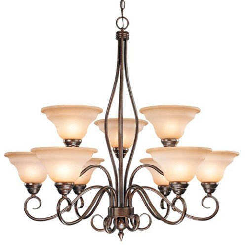 The Detailed Description of Vaxcel USA CH35709RBZB Avon 9 Light Traditional Chandelier Lighting Fixture in Bronze, GlassFeatures