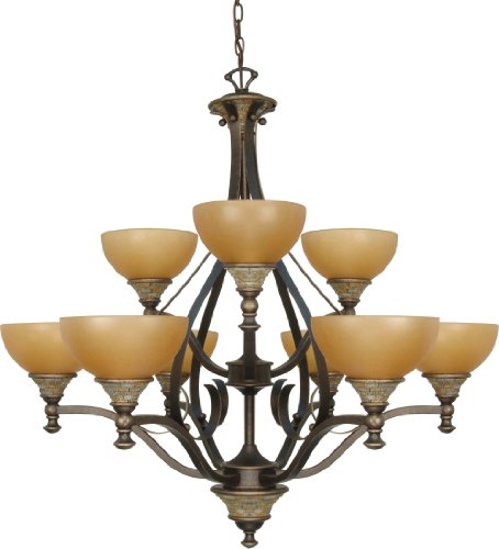 The Detailed Description of Nuvo 60/1091 2 Tier 9 Light Chandelier with Sepia GlassFeatures