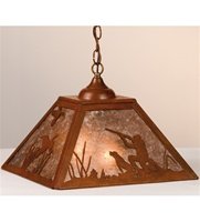 Meyda Tiffany 76323 Quail Hunter with Dog 2-Light Pendant is hand crafted in the USA by Meyda artisans. A hunter and dog companion flush ducks from their wooded retreat on this four sided pendant shade finished in a warm Rust and complemented with Silver Mica panels. The 76323 is 32.5-Inch high x 16-Inch wide. The 76323 comes one per package, and requires two 100-Watt medium base incandescent bulbs (not included), dimmable using a standard incandescent dimmer. As in any hand crafted glass, patterning and the overall look may vary, and may not look exactly like the image shown when received, and may all differ slightly if ordering in multiples. Custom crafted in Yorkville, NY - please allow 30 days before shipping. The Meyda Tiffany Company is the nation's leading manufacturer and designer of Tiffany lamps and decorative lighting. Although founded in 1974, the firm's roots actually date back to the early 1900s, supplying Louis Comfort Tiffany and Tiffany Studios with lighting products, and creating the original Coca-Cola stained glass lamps and chandeliers.Meyda Lighting offers thousands of in-stock stained glass lighting and decor designs, with more than 50,000 customizable lighting options. Its vast line includes: Coca-Cola stained glass lighting group; Old Forge Collection of Rustic and Lodge styled lighting and decor; Craftsman Signature Series of outdoor and indoor lighting (including new landscape lanterns) featuring Arts and Crafts designs; Stained Glass lighting featuring Victorian, Nouveau and a broad range of styles; Art Glass windows and Fireplace Screens; Tiffany gifts and home accents; and The Metro and Metro Fusion Lines of contemporary art glass and fused glass designs.