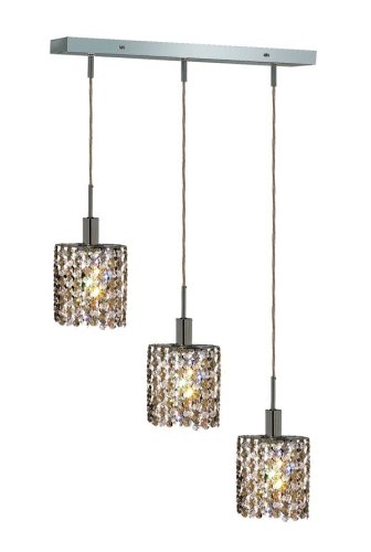 1383D-O-E-GT/RC Crystal Color / Crystal Trim: Golden Teak (Smoky) / Royal Cut Features: -Pendant.-Available in Strass Swarovski, Spectra Swarovski, Elegant Cut and Royal Cut trims.-Oblong canopy. Includes: -36'' Chain / wire included. Options: -Available in several crystal colors. Color/Finish: -Finish: Chrome. Specifications: -Accommodates: 3 x 55 - 165W Max 110V-125V (GU10) bulb. Dimensions: -Hanging weight: 8.-Dimensions: 8'' - 48'' H x 14.5'' W x 4.5'' D. Collection: -Mini collection.