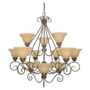 3 tier 12 light chandelier with champagne glass. (12) 60-Watt A19 bulbs not included.