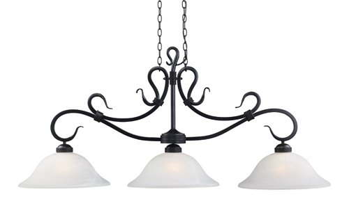 248-BK Size: 16" H x 54" W x 24" D Features: -Three light billard / island.-Shade material: White faux marble glass. Options: -Available in 12'' and 16'' height sizes. Color/Finish: -Matte black finish. Specifications: -Accommodates (3) 75W medium base bulb. Dimensions: -12'' Billiard / island dimensions: 12'' H x 40'' W x 20'' D.-16'' Billiard / island dimensions: 16'' H x 54'' W x 24'' D. Collection: -Buckingham collection.