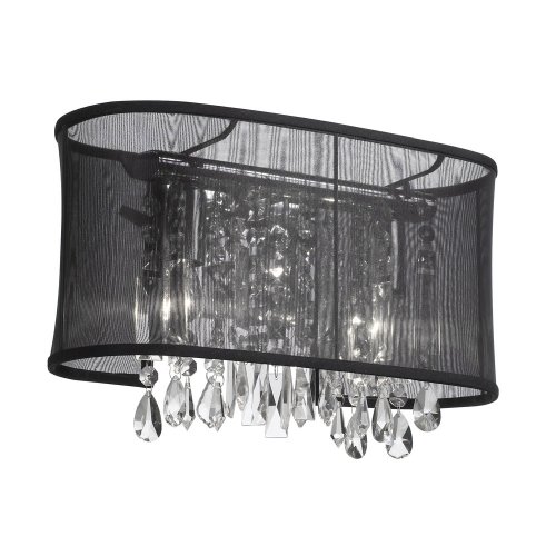 Finish:Polished Chrome, Shade:Black Organza, Light Bulb:(2)60w A19 Med F Incand 2-Light Crystal Sconce-Oval Shade Crystal sconce c/w 12 strands of clear crystal Total width 10' (25cm)