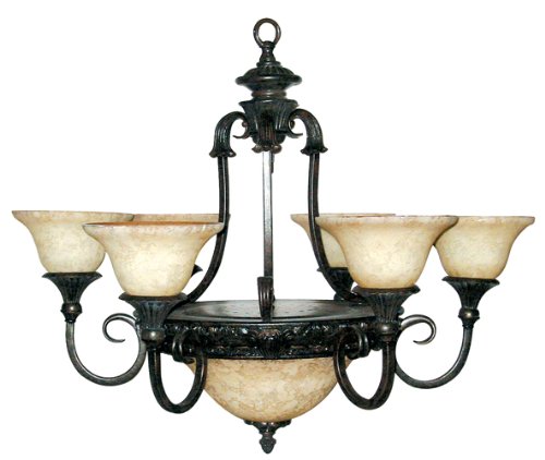 The Detailed Description of Yosemite Home Decor F023A09SB Verona 9 Light Chandelier, Honey Parchment Glass Shades, Sienna Bronze Finished Frame, 32" x 26"Features