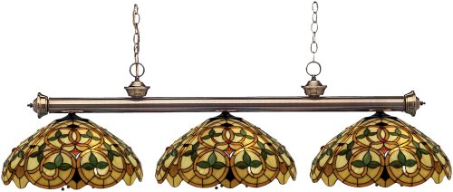 The Detailed Description of Z-Lite 100703AB-C14 English Ivy 54-Inch 3-Light Billiard / Island Fixture with Tiffany ShadesFeatures