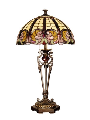The renowned manufacturer of fine art glass lighting and home dcor, Dale Tiffany uses the highest quality hand-rolled art glass, hand leading, and the "copper foil" technique, a glass assembly method originally developed by Louis Comfort Tiffany more than 100 years ago. Each piece is handcrafted, so no two are exactly alike. This lamp measures a grand 29-1/2 inches high and takes two 60-watt light bulbs. Two metal pull chains turn the lights on and off. --Kara Karll