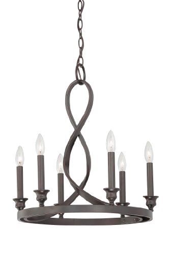 Finish:Dark Cherry, Light Bulb:(6)60w B10 Cand C Incand Unencumbered and clean is the appeal of this collection. The gentle twist in the framework showcases the dark cherry finish making your home feel warm and inviting.