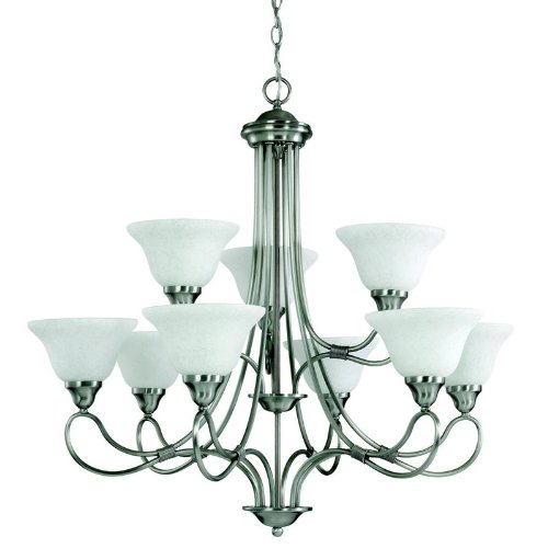 Finish:Antique Pewter, Glass:White French Scavo, Light Bulb:(9)100w A19 Med F Incand